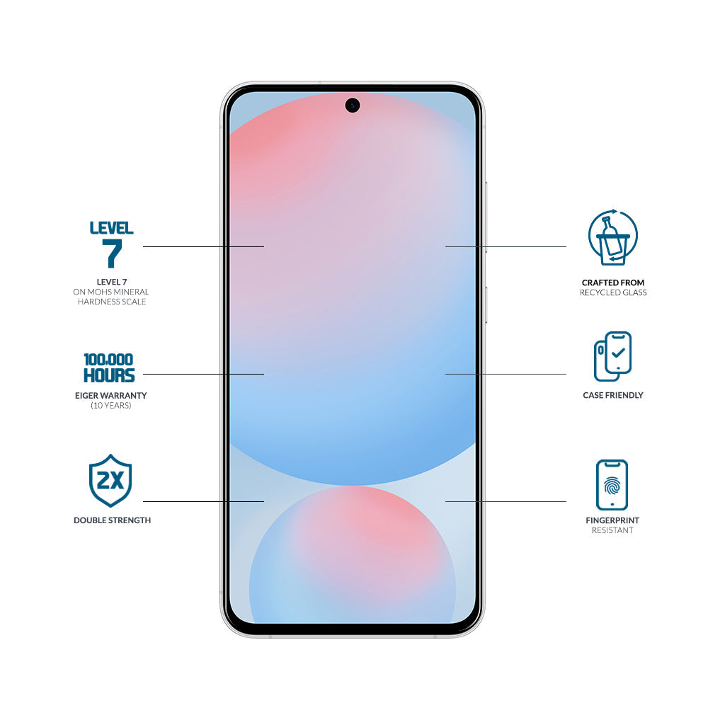 Eiger screen protectors provide an excellent level of protection for your device’s screen against impact and scratches. However, it is not indestructible and will break if subjected to larger amounts of force. The goal of our screen protectors is to protect your device’s screen by absorbing and dissipating the force of any knock or impact, this may result in the screen protector cracking whilst keeping your smartphone’s screen intact. Your Eiger screen protector is covered by a warranty effective from the date of purchase. The warranty covers manufacturing and workmanship defects only.