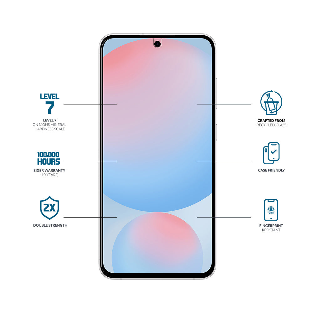 Eiger screen protectors provide an excellent level of protection for your device’s screen against impact and scratches. However, it is not indestructible and will break if subjected to larger amounts of force. The goal of our screen protectors is to protect your device’s screen by absorbing and dissipating the force of any knock or impact, this may result in the screen protector cracking whilst keeping your smartphone’s screen intact. Your Eiger screen protector is covered by a warranty effective from the date of purchase. The warranty covers manufacturing and workmanship defects only.