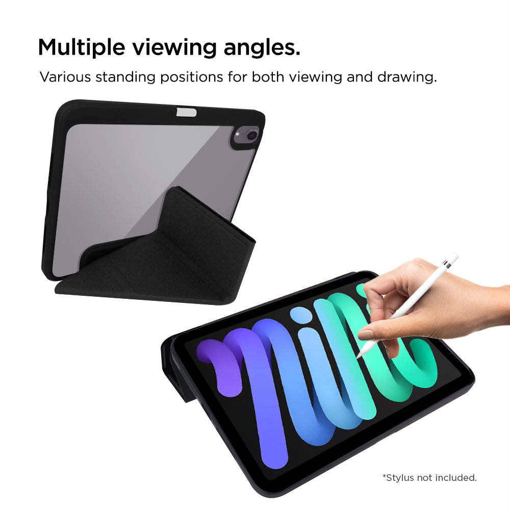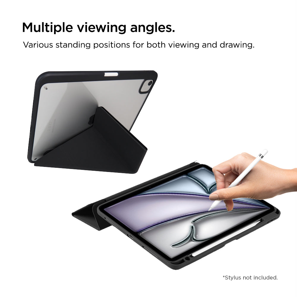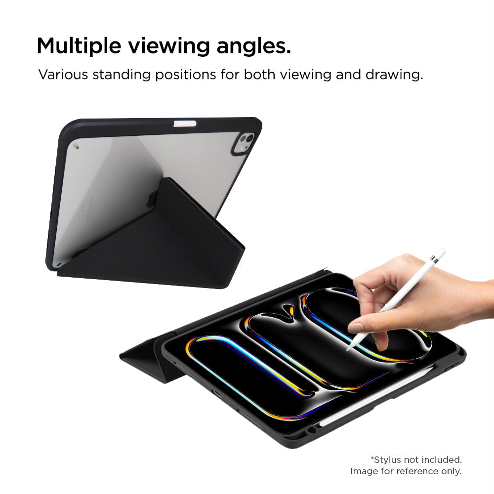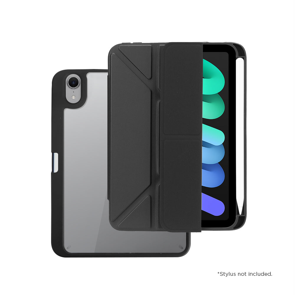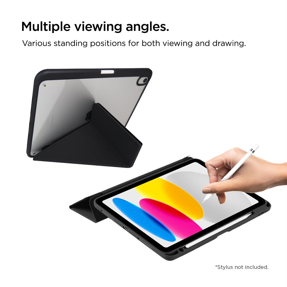 - Y-fold and tri-fold front cover with multiple standing positions.